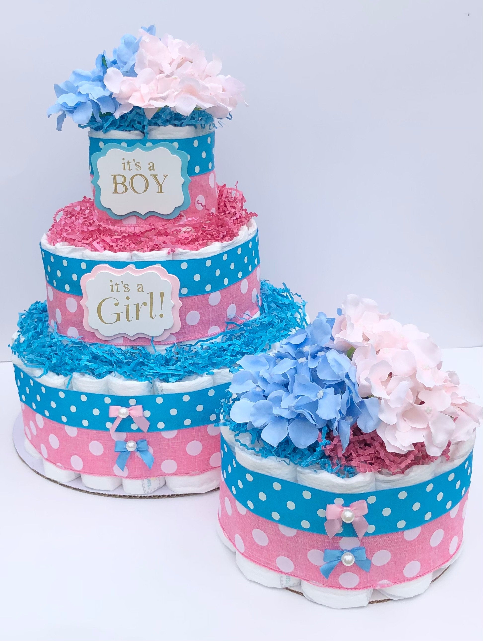🔸 This adorable and elegant Gender Reveal 1 tier Diaper Cake is a wonderful way to add flair and lend a personal touch to any baby shower.